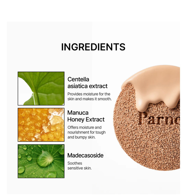 برخلاف بیشتر کوشنها که فقط کاور میدن، این محصول با Cica + Manuka Honey مثل یک سرم ضدالتهاب عمل میکنه. یعنی وقتی روی جوش یا قرمزی میزنی، هم میپوشونه و هم باعث ترمیم میشه.